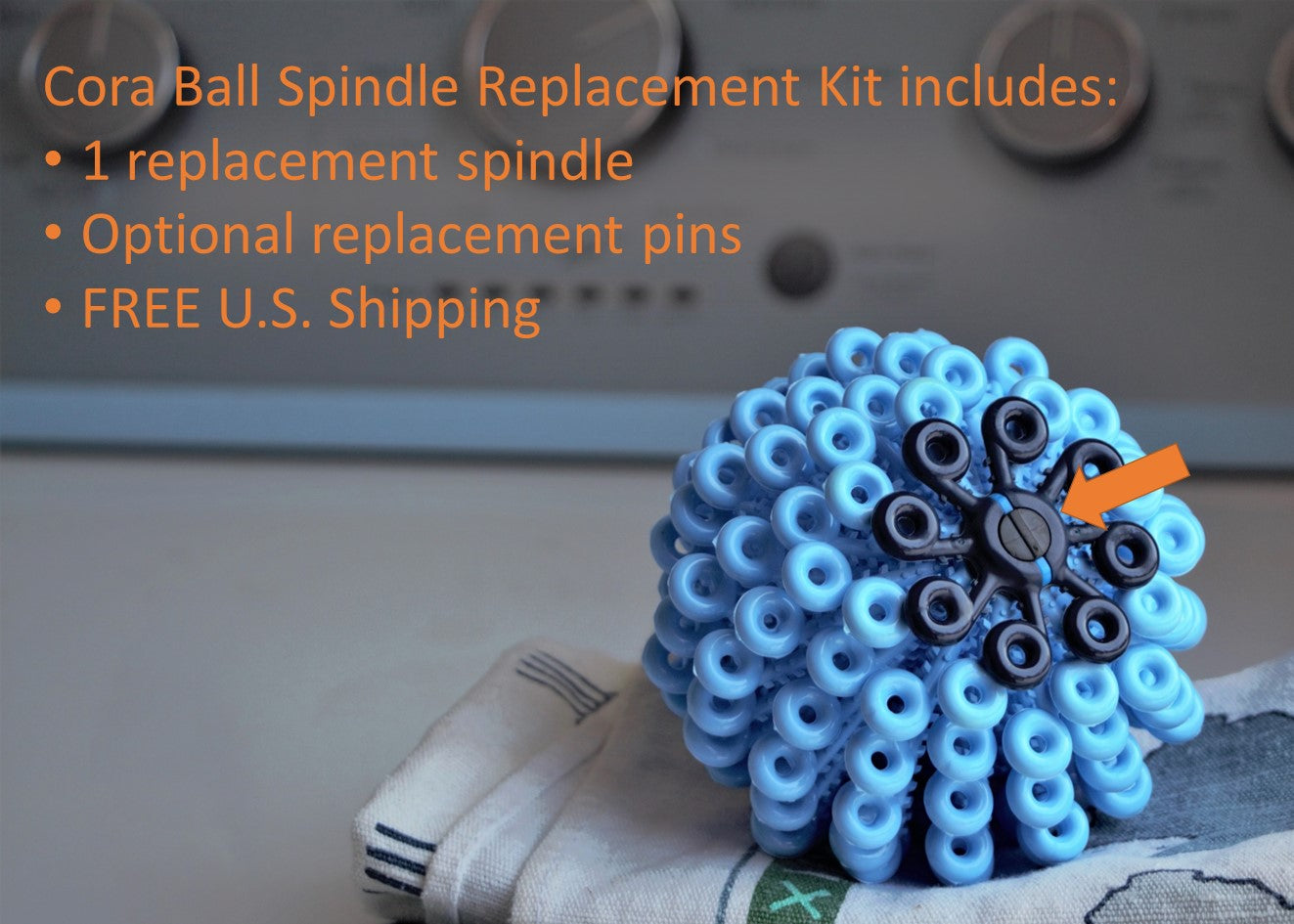 Cora Balls have been made to last years of washing and hundreds of loads of laundry. However, we all do laundry differently and the spindle of the Cora Ball can wear out. To extend the life of your Cora Ball, get a spindle replacement kit and continue washing your clothes sustainably!